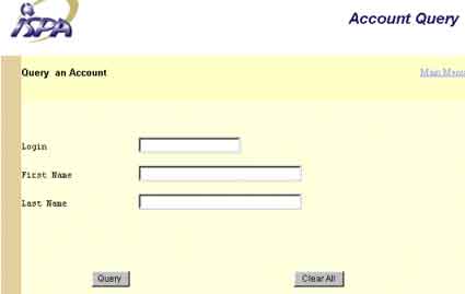 This screen is used to query an existing customer's account information, such as the customer's login or to place the customer on hold or to take the customer off hold. To query an existing customer, fill in any of the fields and click on the "Query" button. On the account screen, you can make any modifications to the account and then clicking on the "Modify" button at the bottom of the screen. To delete the customer's account, simply click on the "Delete" button. Once the Account is deleted, you must then delete the customer order part of the account. Once the customer order is deleted, you must then delete the customer information.