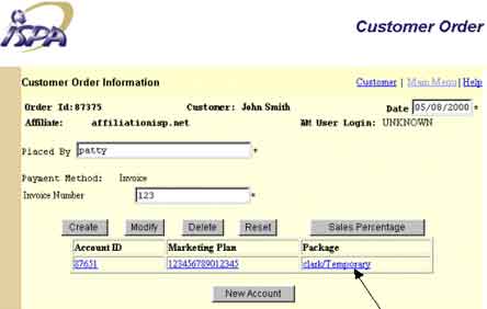 To proceed to the account information screen, click on the blue link at the bottom of the "Customer Order" screen.