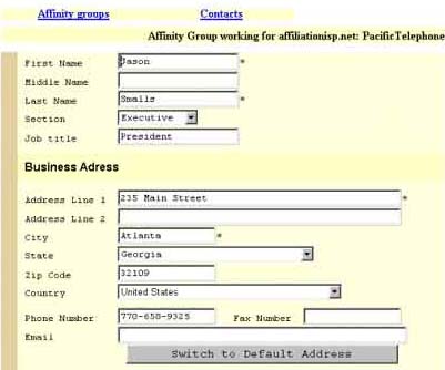 you have created an affinity group, you can add the contact information for that