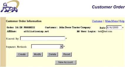 To create the customer order for this customer, fill in the required fields. When you select the payment method, the screen will refresh with additional fields for card or invoice number. Once this is done, click on the "Create" button. The screen will refresh once more, click on the "New Account" button.