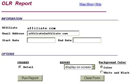 OLR ReportThe OLR report is a great resource to help you keep track of your Online Registration customers utilizing the Internet Made Simple CD. By filling out the Start Date and the End Date, you can specify your query parameters however you need. You also have the option of displaying the report on screen, saving it to a disc, or sending it to your email. To change the email address that the report will be sent to, you can modify the Email Address field to show the correct address.