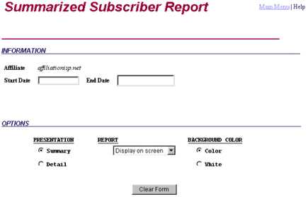 The summarized subscriber base report is a summary report of all your customers. You have the options of displaying the report on your screen, save to disk, and send by email. To run the report, fill in the start and end dates select "Summary", where you want the report to be displayed, then click on the colored bar at the bottom of the screen: